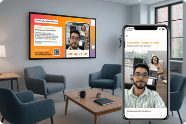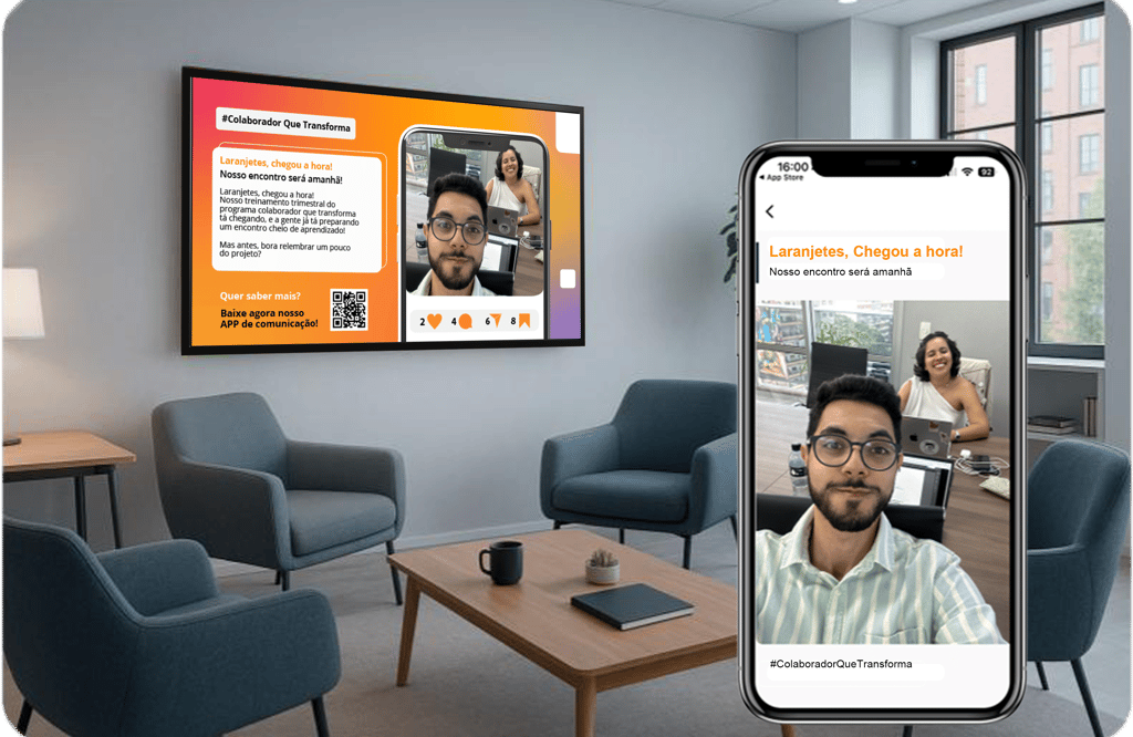 O conteúdo que você publica no aplicativo espelhado nas TVs Corporativas com apenas 1 clique